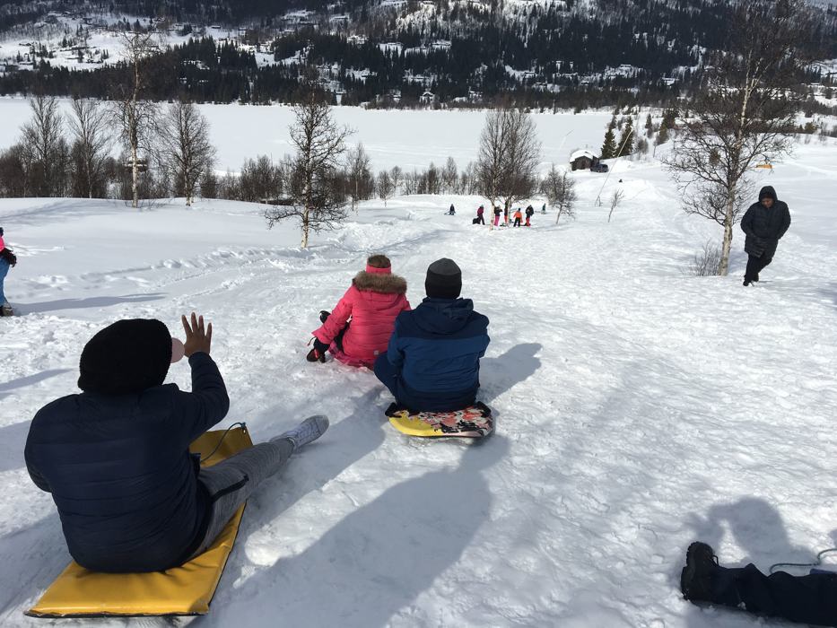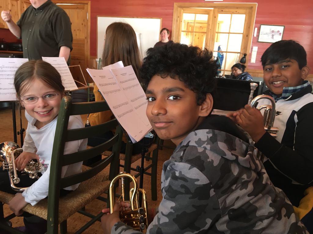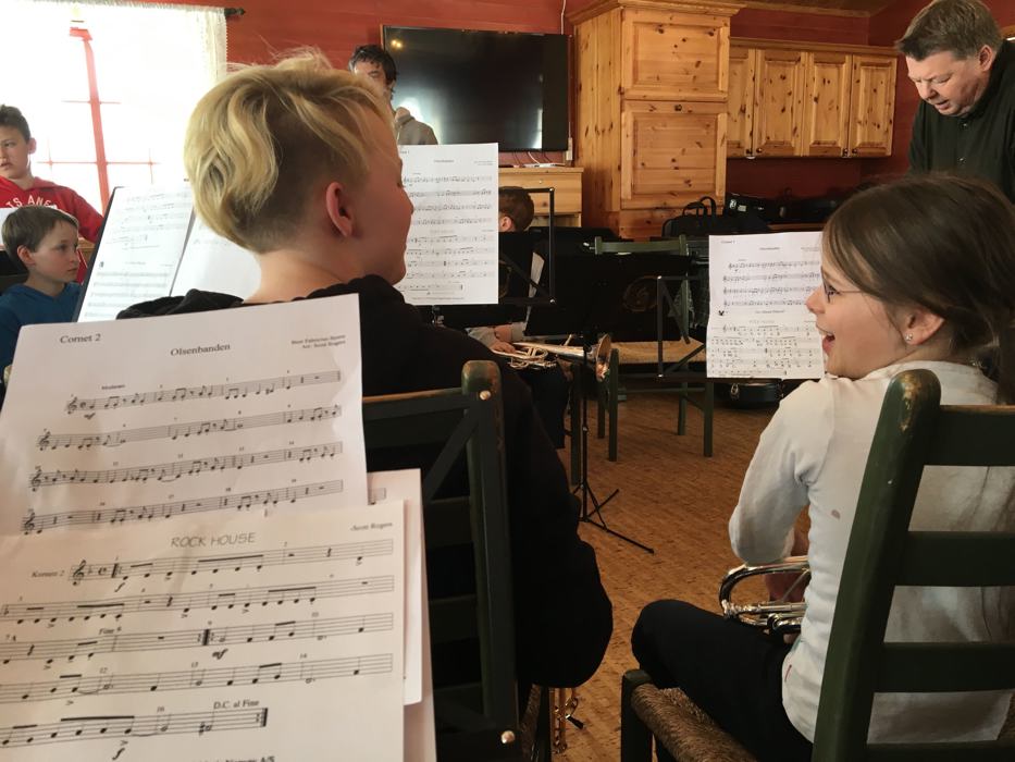 Lørdag kom musikantene fra Vestre Slidre og Vang. Det ble mye spilling både i grupper og alle sammen og snart tok Gammel jegermarsj og de andre marsjene form. Etter en felles lunsj ble det aking, snøhulegraving og moro i snøen.